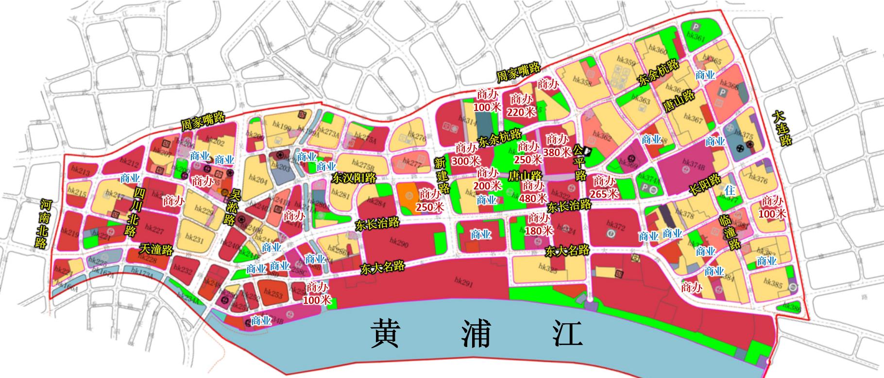 2020年上海市政府批复同意《北外滩地区控制性详细规划》,东至大连路,南至黄浦江—苏州河,西至河南北路,北至海宁路—周家嘴路,总面积约4平方公里,其中住宅建筑面积约219万㎡、商业办公建筑面积约547万㎡。