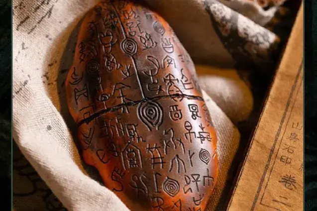 等到殷商末年之时,雮尘珠又到了周文王手中。周文王凭借看家的卦数进行了一番占卜,将占卜的两条信息以密文记载在了龟甲之上,就是龙骨天书。