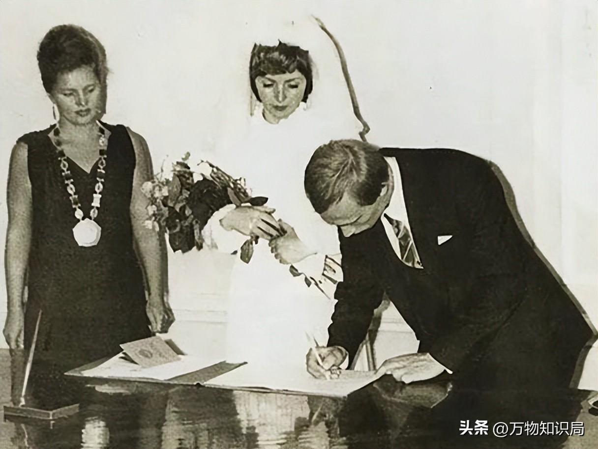 眼前的场景则正是俩人的婚礼现场,只见普京西装笔挺,柳德米拉穿着洁白的婚纱,似乎就是最美丽的新娘,俩人低着头在交换着戒指,其气氛十分美好浪漫。