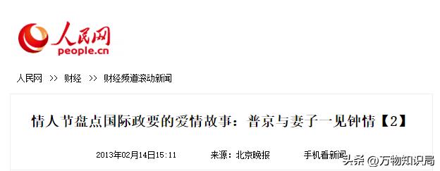 人民网——《情人节盘点国际政要的爱情故事:普京与妻子一见钟情【2】》2013-02-14