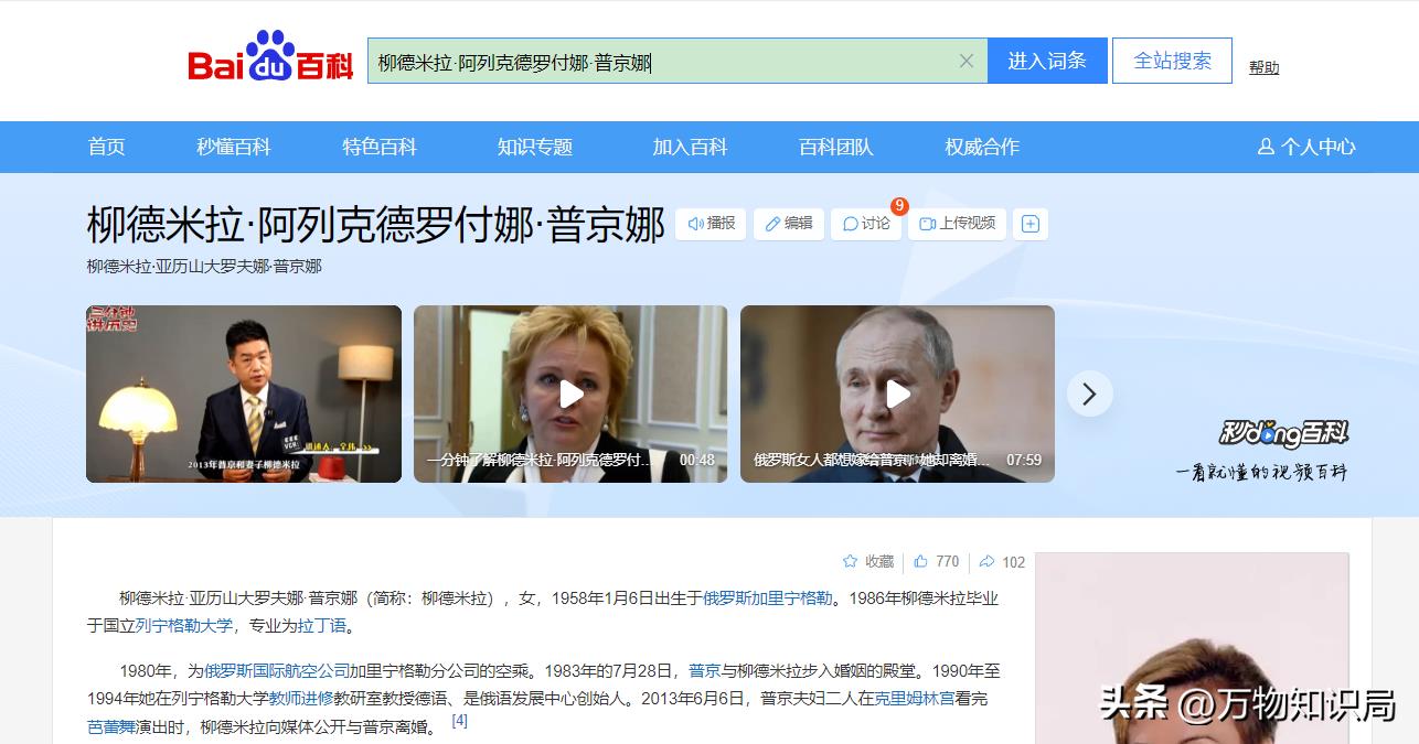 百度百科——《柳德米拉·阿列克德罗付娜·普京娜》