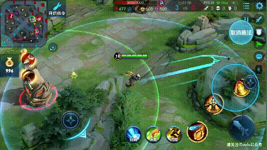 如图:狄仁杰的大招可以对直线方向的敌人造成晕眩效果,并且可以使用“大闪”取消技能的后摇。