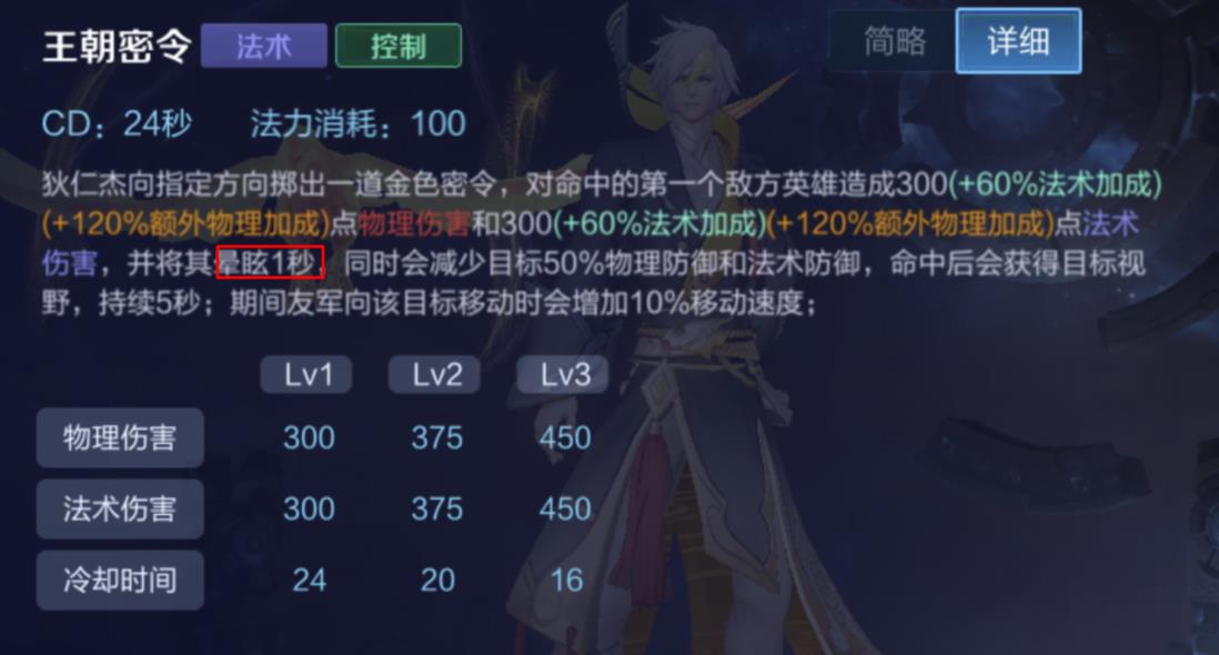 狄仁杰的大招会向指定方向掷出一道金牌,对命中的第一个敌人造成1秒眩晕。