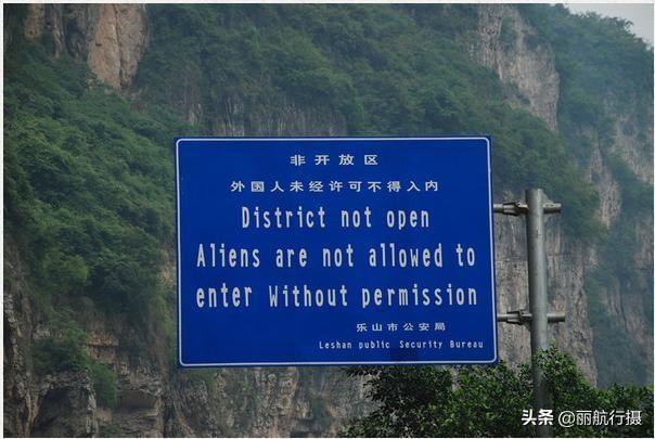 进入大峡谷后,一路上有这样的警示牌,上面十分清楚地书写着:“外国人未经许可不得入内” ! 金口大峡谷之出名,最大的原因不仅仅是它的景色壮丽,而是在于金口大峡谷是免费的景区,而且周边矗立着的醒目的警示牌“外国人未经许可不得入内”,而这也被众多网友戏称为中国最有良心最有骨气的景区。这与它背后的故事分不开,据悉抗战时期,四川的汉子们纷纷加入抗战队伍,深入前线。而金口大峡谷因为独特的地势,成为重要的大后方,这里有在抗战时期为了打通与滇缅公路的连接,修筑的险峻的乐西(乐山至西昌)公路。里面修建过很多军事设备,有隐藏在崇山峻岭中的七十年代备战备荒时修筑的全国第三的战备仓库,还有铁道兵博物馆等等,关乎着一些国家机密,自然不允许外国人参观,也能理解。