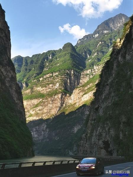 行驶在大峡谷的公路上,两岸的峭壁扑面而来,更显得深邃莫测,峡口形成的天然石门,大渡河的陡然转弯,高差达一千多米的悬崖与尖峭的山峰迎面耸立,似乎河谷中断,江流无路,令人森然。