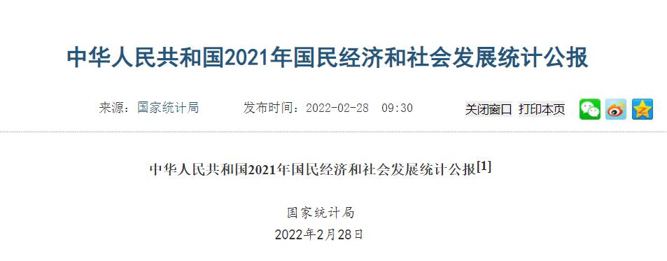 奶粉智库网讯,2022年2月28日,国家统计局发布了《中华人民共和国2021年国民经济和社会发展统计公报》,公告指出:全年国内生产总值1143670亿元,比上年增长8.1%,两年平均增长5.1%。2021年全年人均国内生产总值80976元,比上年增长8.0%。国民总收入1133518亿元,比上年增长7.9%。(奶粉智库网)
