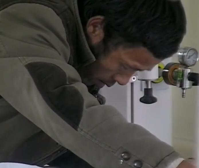 侯文艳身上的伤口不是很大,但是都是比较深的一个情况,医生此时正在给她缝针,剧烈的疼痛感让她闭着眼睛,但还是不断有泪花。