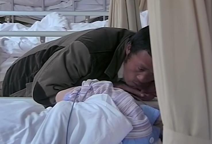 父亲开始询问着女儿:“你身上疼不疼啊,爸爸听到你的病情就马上赶过来,到现在爸爸都输什么都没吃没喝,晚上都是在走廊睡觉。”