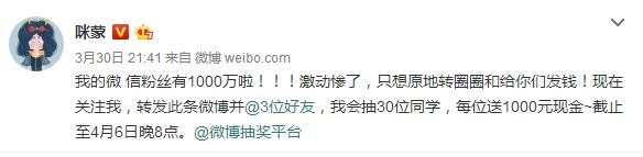 今年3月,咪蒙就在其微博发出粉丝过1000w的消息,在接受GQ采访时说到:新的一年有许多计划,她给自己定下1500万粉丝的目标,打算培养几个针对不同受众的新公号。目前她举办新媒体写作大赛也已经开始了,野心不是一般的小。