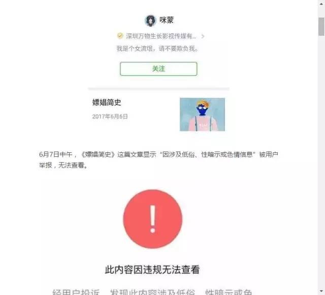 咪蒙的《嫖娼简史》被举报删除后,有人说咪蒙的号是被禁言了,也有人说是被封号……我并不关心咪蒙的号被不被封,即便被封了,实力还在,毕竟她养的那些月薪过5w的员工也不是白养的(一个助理月薪就5w,羡慕羡慕……)