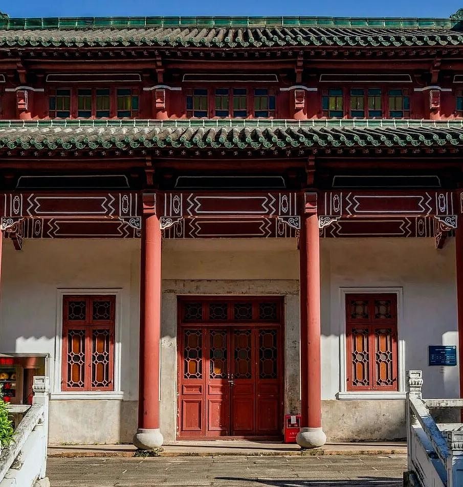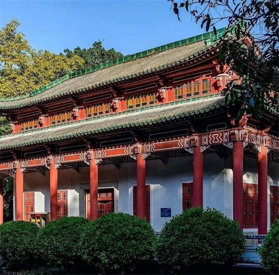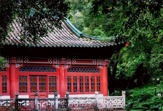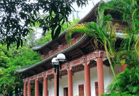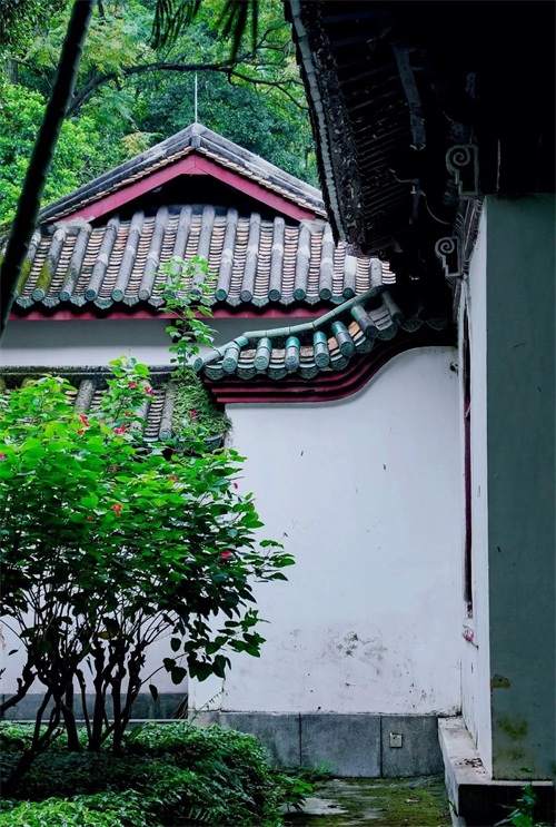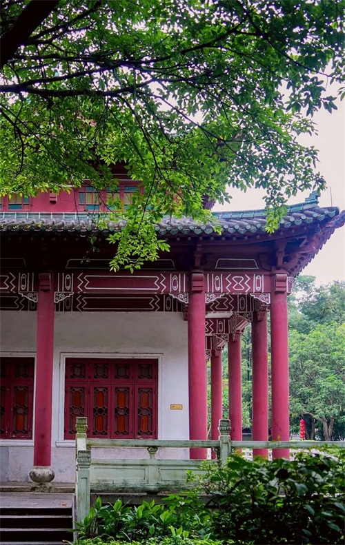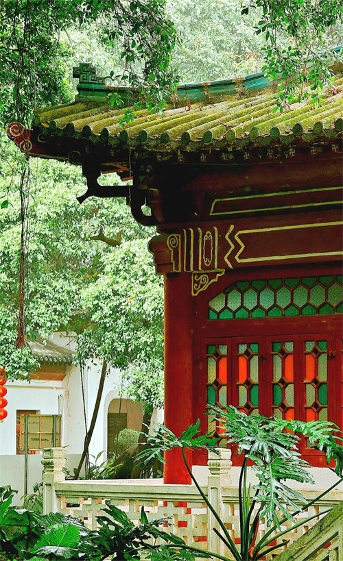 其整体为岭南园林布局,内有多座红墙绿瓦的宫殿式建筑,依山傍水、古色古香,可以拍出具有岭南风情的照片,也非常适合小姐姐来拍摄古风,无论晴天还是阴天都会有不一样的感觉。