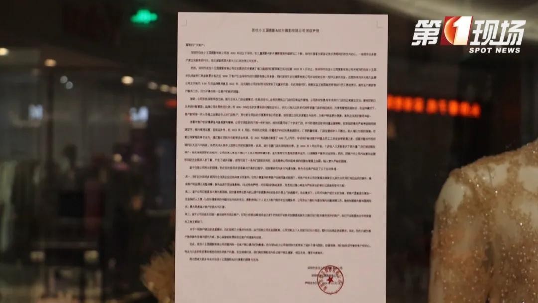 在罗湖店门口,商家贴出公告称公司遭遇了难以逾越的经营困境,已无法经营。11月14日,公司的官方微信公众号幼尔王国儿童摄影,也发布了闭店声明。