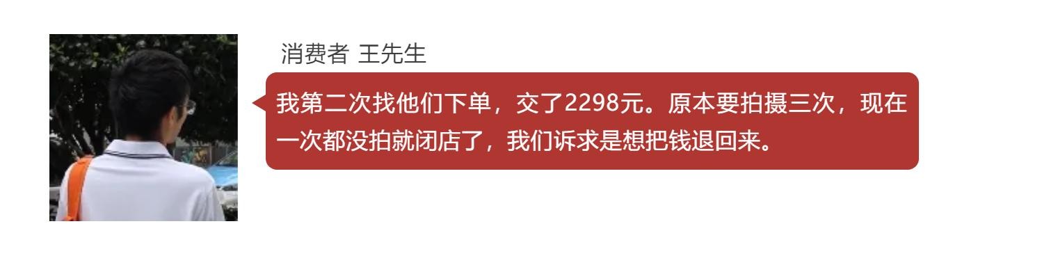 市民王先生手里拿的就是第一次订单拍摄后做的相册,还比较满意,所以才复购了套餐。本以为这家摄影机构是行业内老资历了,没想到突然闭店。