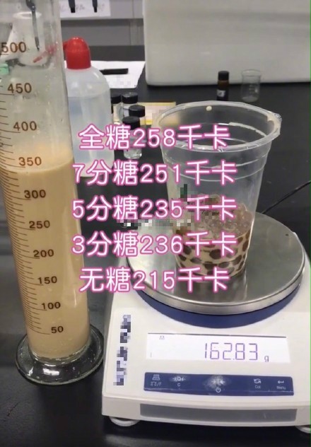 每一种糖分的样品都取340毫升奶茶、163克珍珠果进行测试。