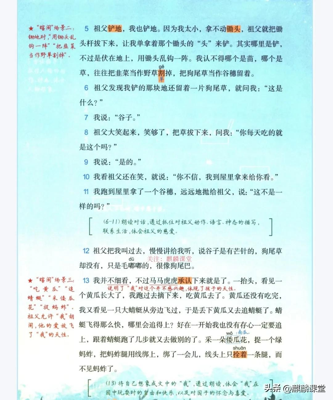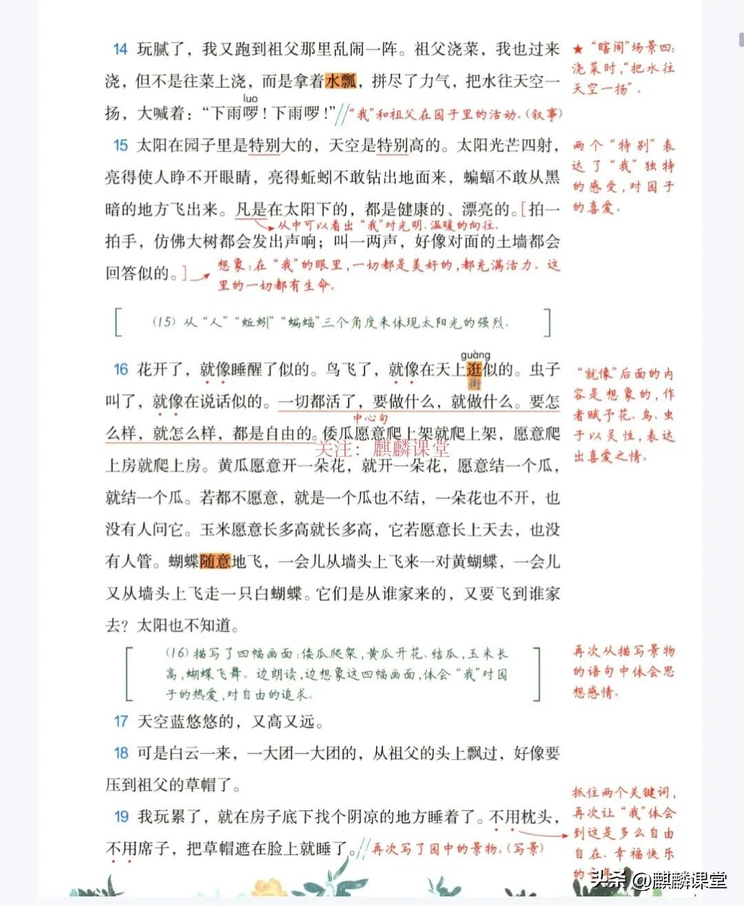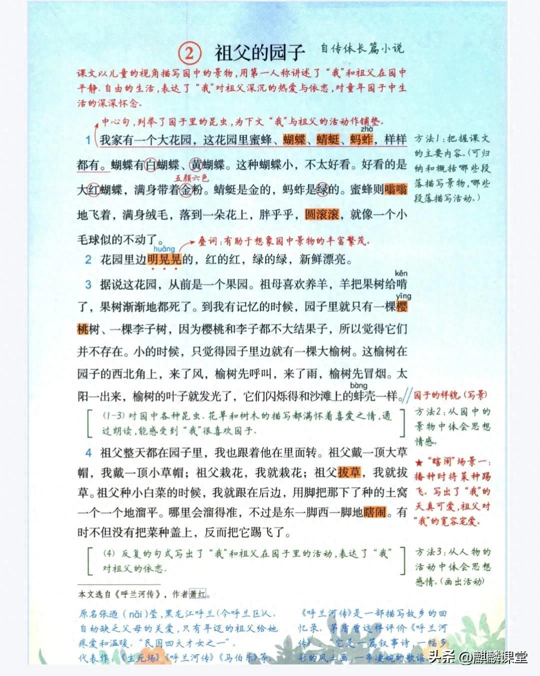 这篇课文节选自萧红的《呼兰河传》,以独特的视角,描绘了作者童年时期在祖父园子里自由自在的生活。作者用细腻的笔触,将一个充满生机与欢乐的园子呈现在我们眼前。