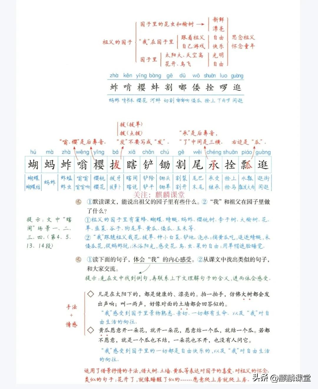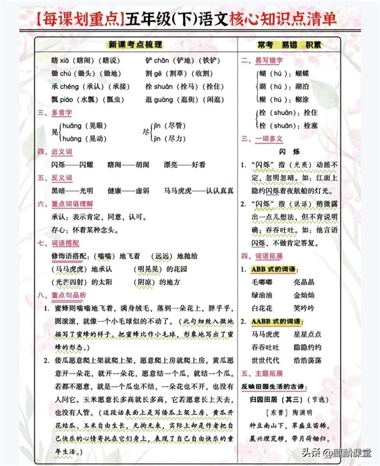 各位家长、同学们,今天为大家带来五年级语文下册第二课《祖父的园子》的课文笔记。