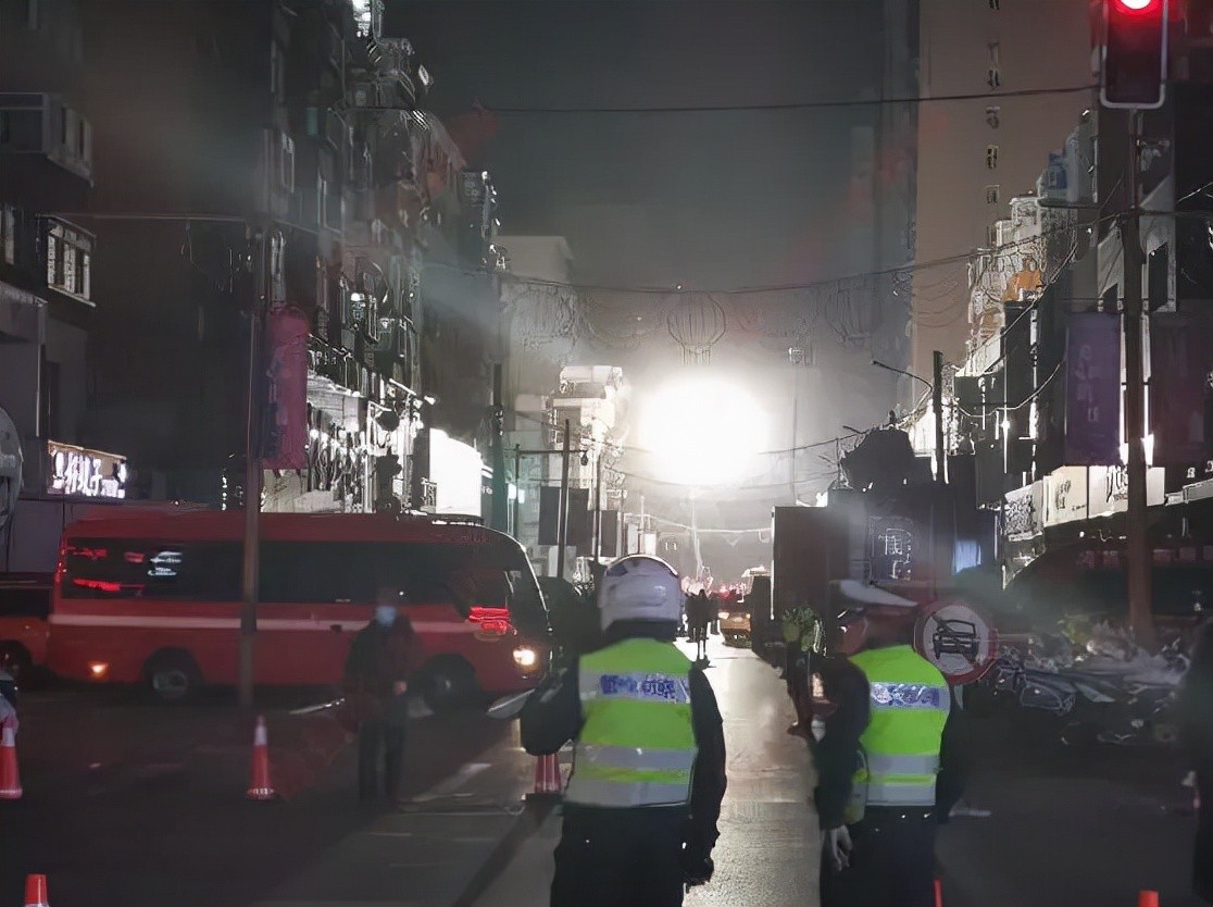 记者在现场注意到,事发地位于老城区,人员密集,道路两旁饭店林立。在警戒区内,所有商铺均已停业。而在警戒线外,不少商铺仍然在营业。