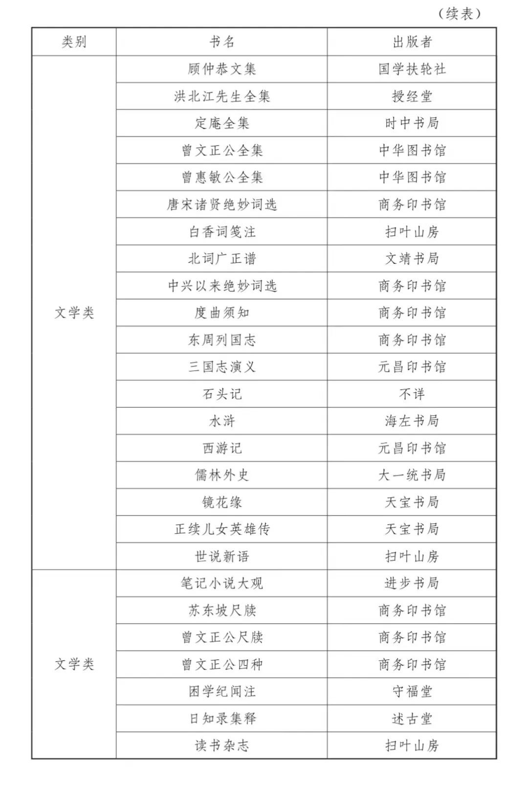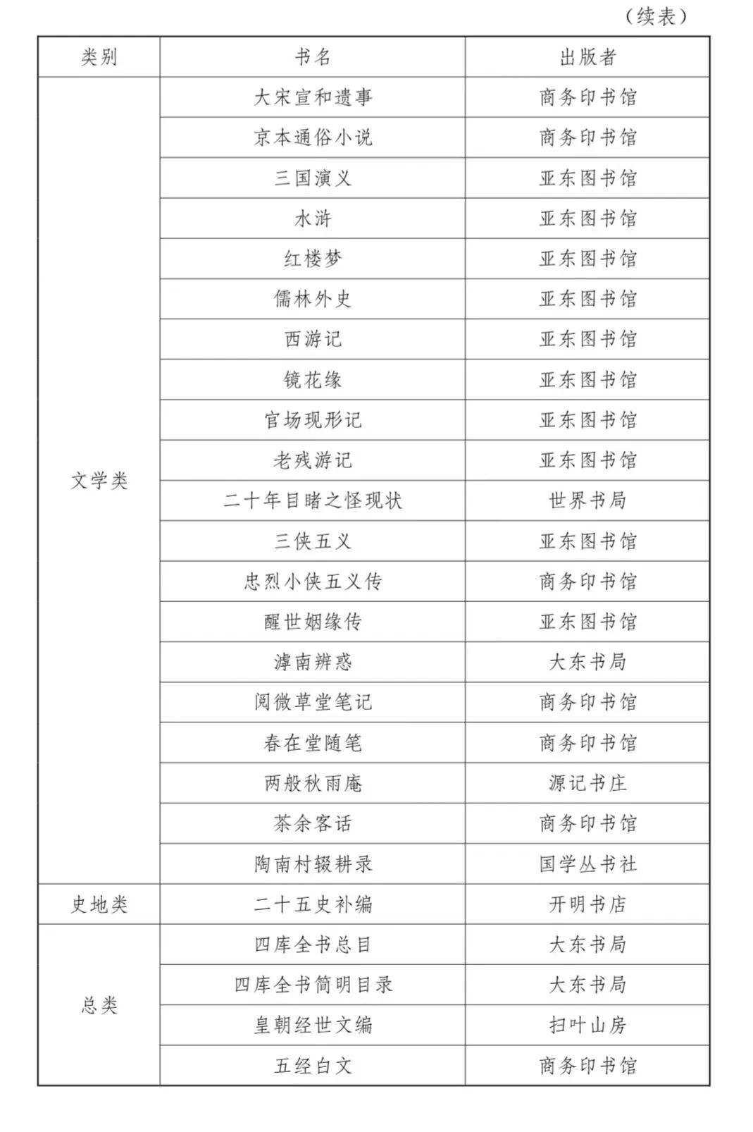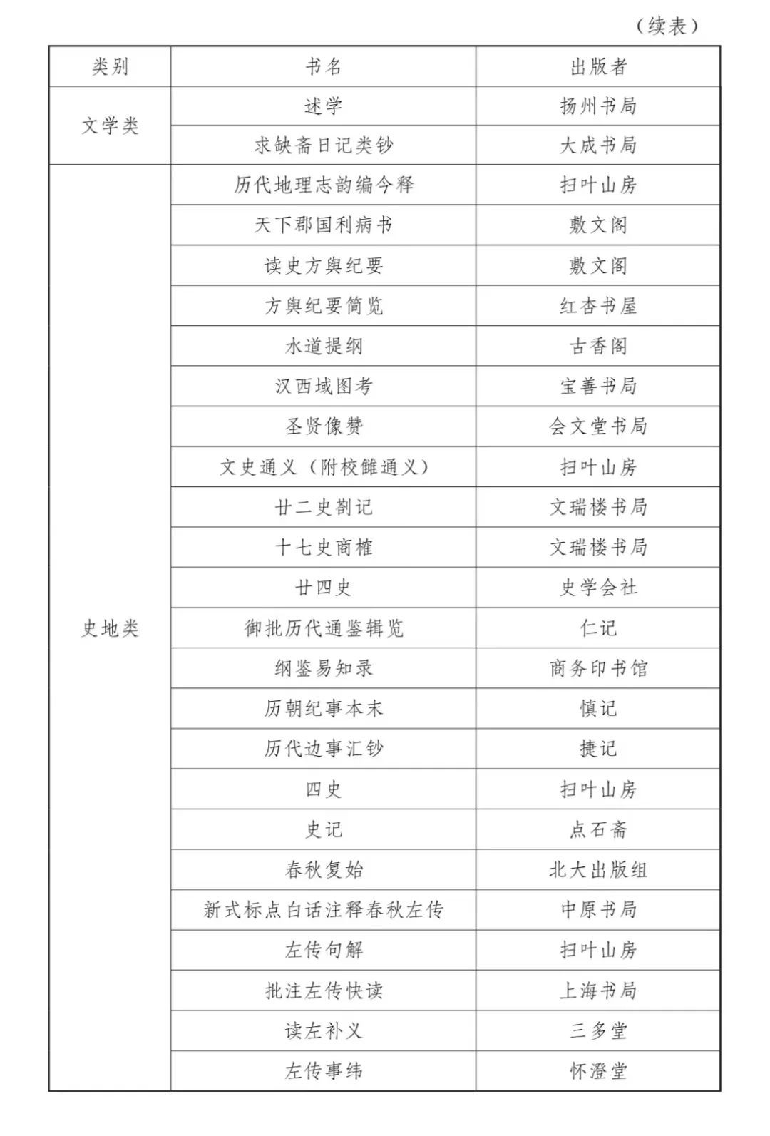 民国时期图书馆购藏的古籍包罗了诸多出版机构的图书。以浙江省立宁波中学图书馆为例,其购买的图书包括古籍丛书、中国文学等类别,整理方式有影印、排印,既有《万有文库第二集》、《四部备要》等丛书,也有《古书读本》等普及性选本,出版者有商务印书馆、中华书局、世界书局、大东书局等大型公司,也有历史悠久的扫叶山房,还包括亚东图书馆、太平洋书店等小型新书业代表。下文列表五统计各图书种类,以见浙江省立宁波中学图书馆购买古籍的细节,直观展示图书馆古籍的来源。