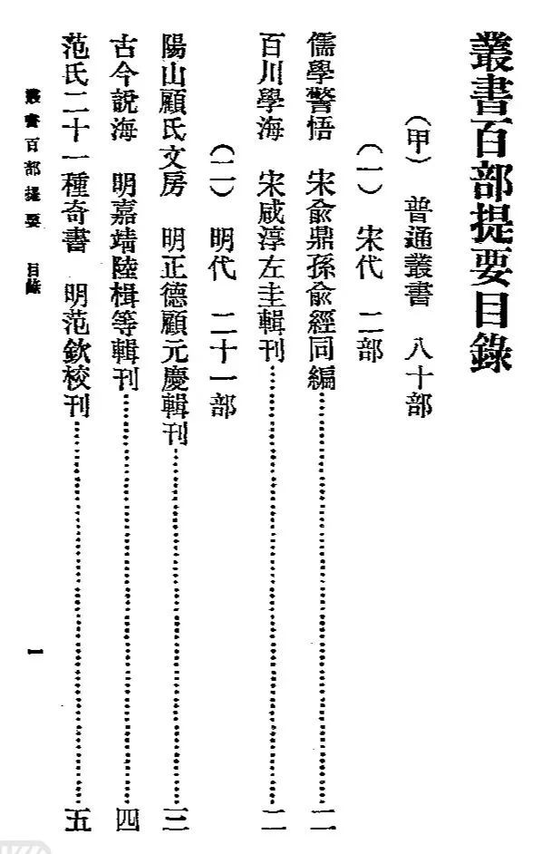 《丛书集成》则为商务印书馆“历年购藏善本丛书至夥,兼多海内仅存之本。今择其尤者百部,汰其重复,整其版式,定名《丛书集成初编》。……全目今已印成,开始发售预约,图书馆及藏书家,曩斥巨资求之而不可得或不易得者,今可以原书二十分之一之代价致之,且尽人得而致之,宁非快事”。