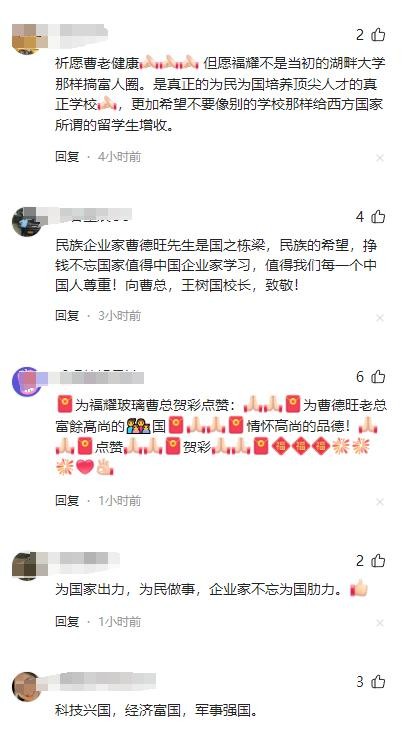从这番话中,可以感受到曹德旺的忐忑和慎重,但网友们显然更关注曹德旺这位民族企业家的教育情怀。
