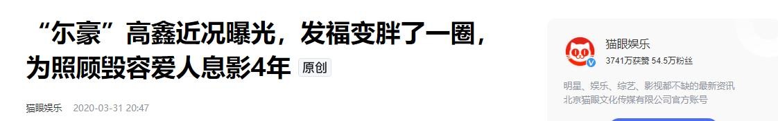 猫眼娱乐|“尓豪”高鑫近况曝光,发福变胖了一圈,为照顾毁容爱人息影4年