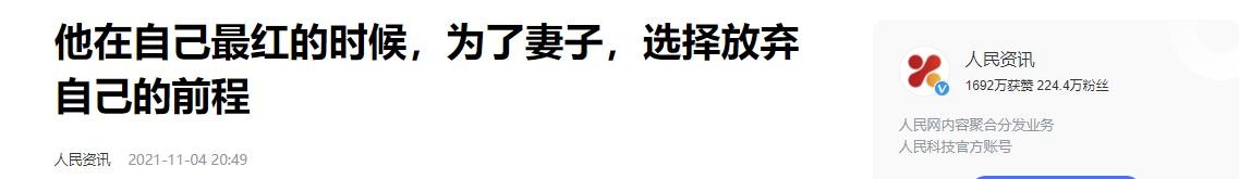 人民资讯|他在自己最红的时候,为了妻子,选择放弃自己的前程