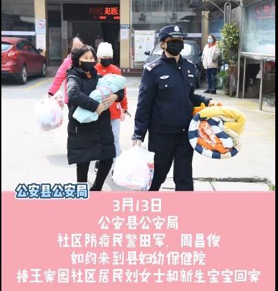1、民警5次护送临产孕妇产检,接新生宝宝回家的还是他们13日,湖北荆州公安县公安局社区防疫民警田军、周昌俊如约来到县妇幼保健院,接王家园社区居民刘女士和新生宝宝回家。2月14日,即将临产的刘女士曾向社区求助,因丈夫被滞留在外地,且城区实行交通管控无法前往医院进行孕检。田军、周昌俊得知此事后,在刘女士待产期间,先后5次护送其产检。(@中国警察网)