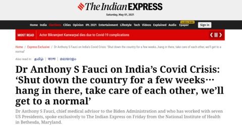 福奇在采访中表示,他不愿卷入到对印度处理疫情问题的任何形式的批评中,因为这会上升会政治问题,而他是一名公共卫生专家。但在他看来,印度的疫情太严重,在准备这次采访时,他从美国媒体上看到的片段发现,印度的形势令人绝望。