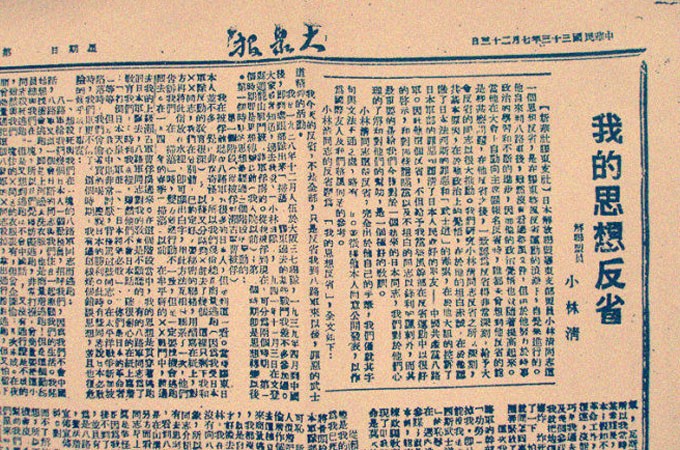小林清用中文撰写《我的思想反省》,并在山东抗日根据地《大众报》上发表。(小林阳吉 提供)