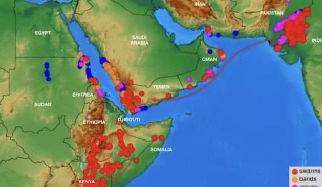 由于东非地区特有的气候和生态环境,这些蝗虫在红海两岸的沙漠地带迅速繁殖。随着种群数量的激增,蝗虫开始向周边地区迁徙,寻找更多的食物来源。年初,蝗虫群开始向索马里、埃塞俄比亚等国扩散,这些国家由于缺乏有效的防治措施,很快成为了蝗虫灾害的重灾区。