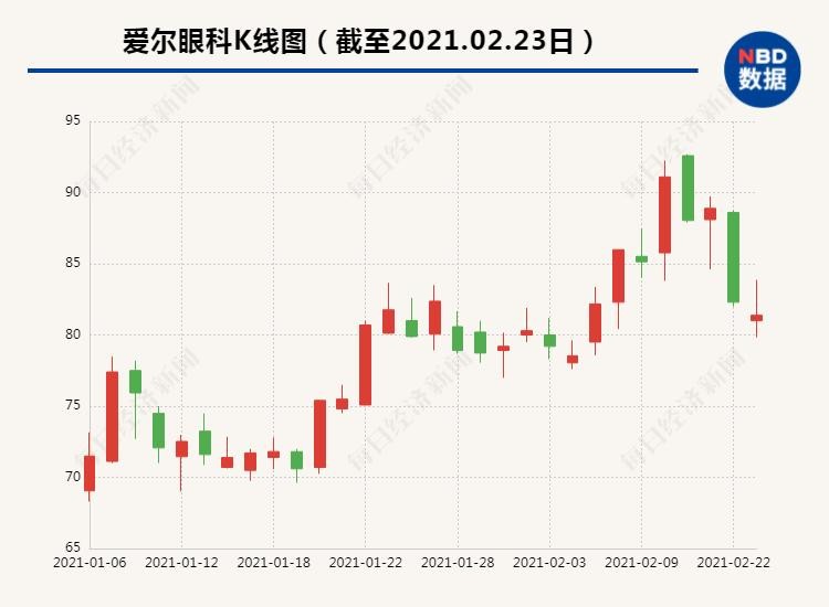 二级市场上,截至今日收盘,爱尔眼科报81.38元/股,收跌1.12%。