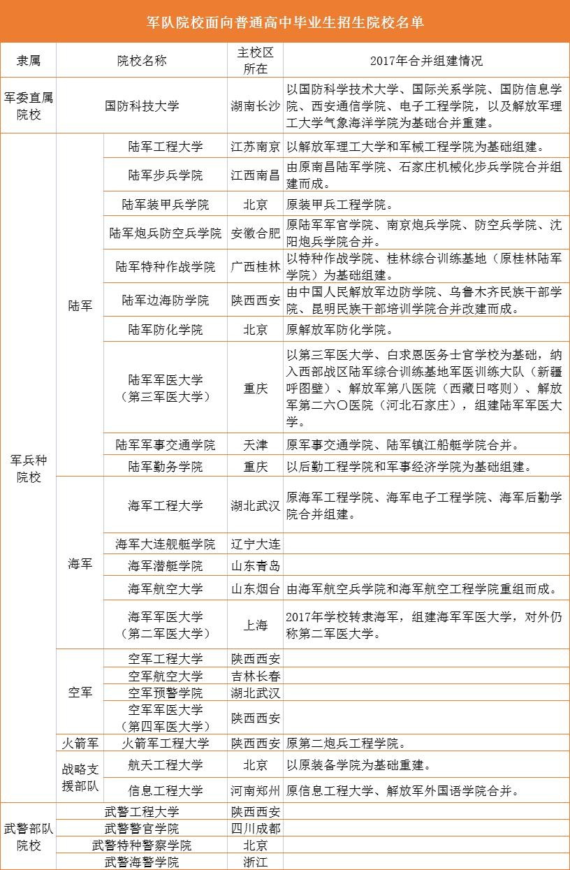 这些学校主要面向高职高专层次招生,定向培养部队士官。对成绩并没有太高的要求,适合有意向到部队发展的同学,具体学校包括: