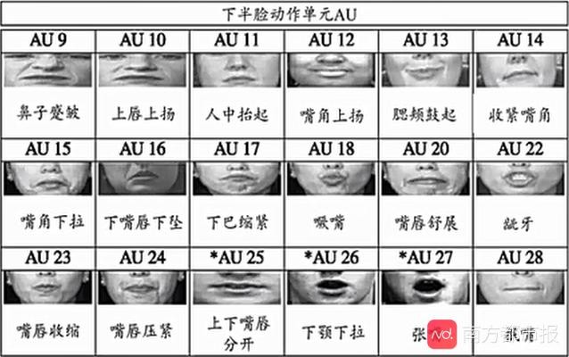 表情检测领域有个概念叫做“面部动作单元(Action Unit,以下简称AU)”。这一概念源自美国心理学家Paul Ekman开创的面部运动编码系统。该系统从人脸解剖学的角度定义了44个AU,用于描述人脸局部区域的肌肉运动。