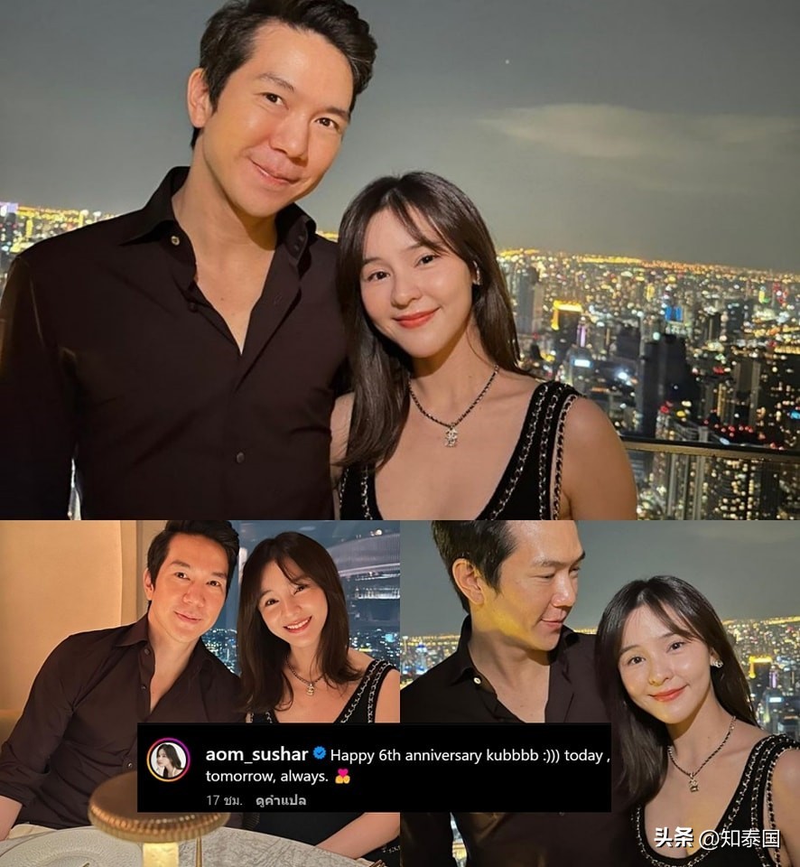 据多家泰媒消息,2023年10月15日晚,Aom与Amp交往6周年纪念日之际,Aom在个人社交账号发文晒出两人的浪漫约会照,配文称“Happy 6th anniversary kubbbb :))) today , tomorrow, always/六周年快乐哦!今天,明天,永远!”照片中Aom与Amp一起享用晚餐,身穿同色系服装甜蜜相拥,幸福之情溢于言表!