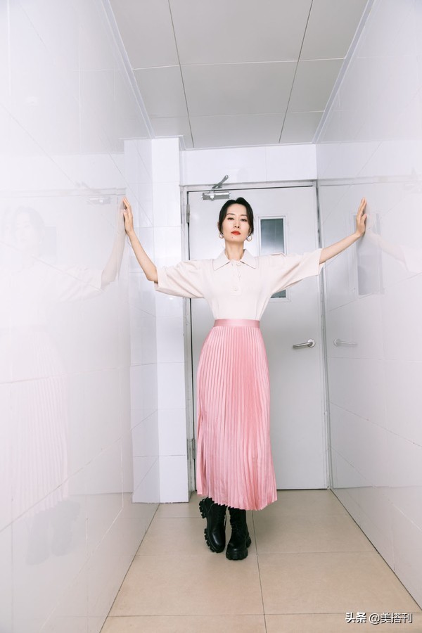 粉色半长裙刘敏涛最近也穿了,同样是百褶的设计,这种丝绒的粉色百褶裙甜美中带着几分暖意,大部分人都会在秋冬穿。夏天反季节穿格外罕见,上衣搭配一款白色衬衫,将知性的少女风演绎的十分完美。衬衫是五分袖,脚上的鞋子是黑色马丁靴,甜中带酷,酷甜穿搭是今年的一大流行,别看刘敏涛人到中年,但一直跟着上潮流。穿衣上就能看出来,她今年的造型简直和和年轻小花们一较高低了!
