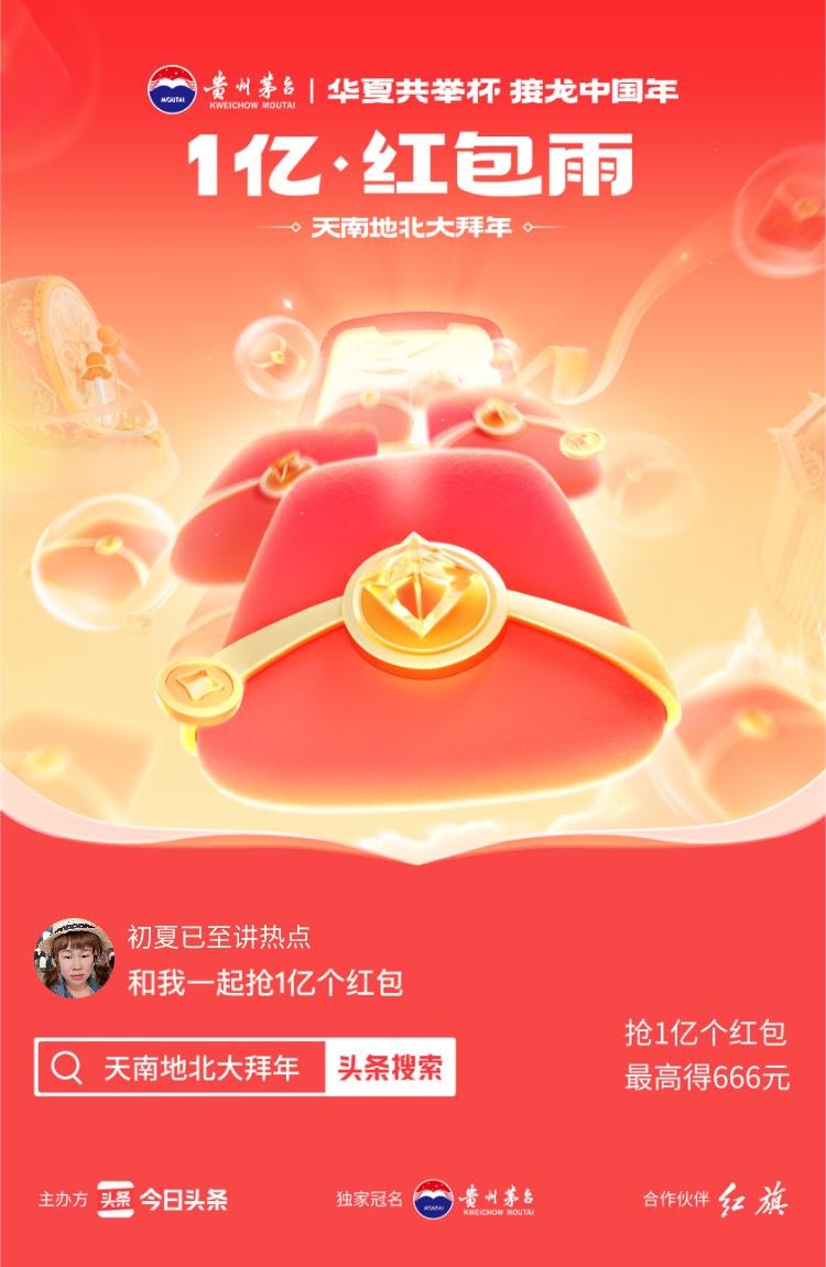 #头条春节红包雨# 抢1亿个红包