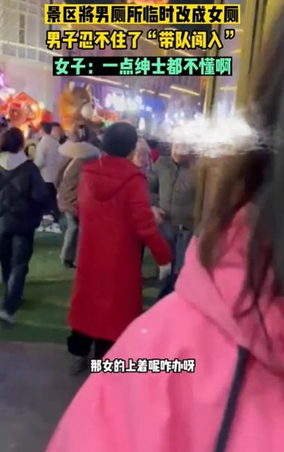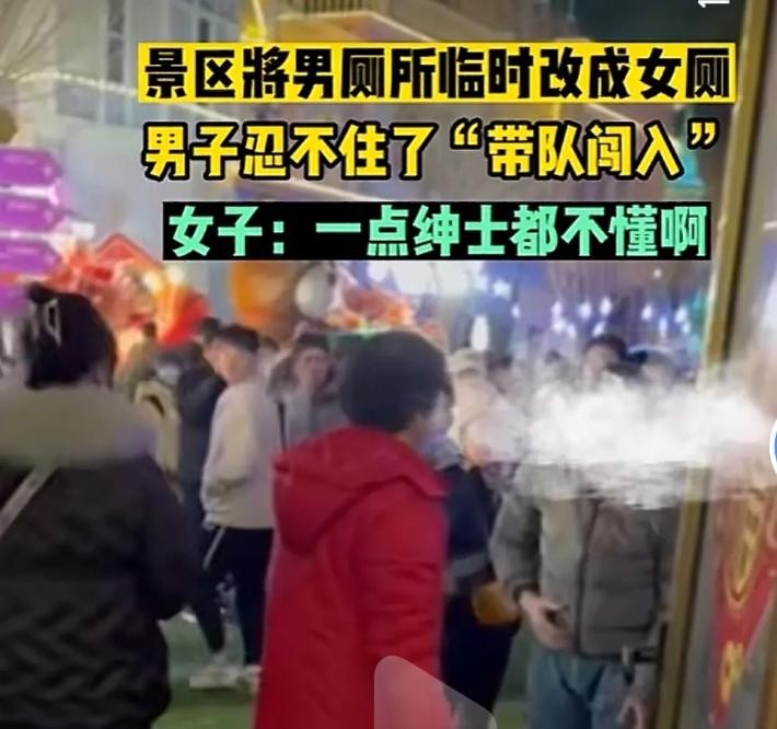 景区将男厕所临时改成女厕,男子忍不住了“带队闯入”,被指责没有绅士风度