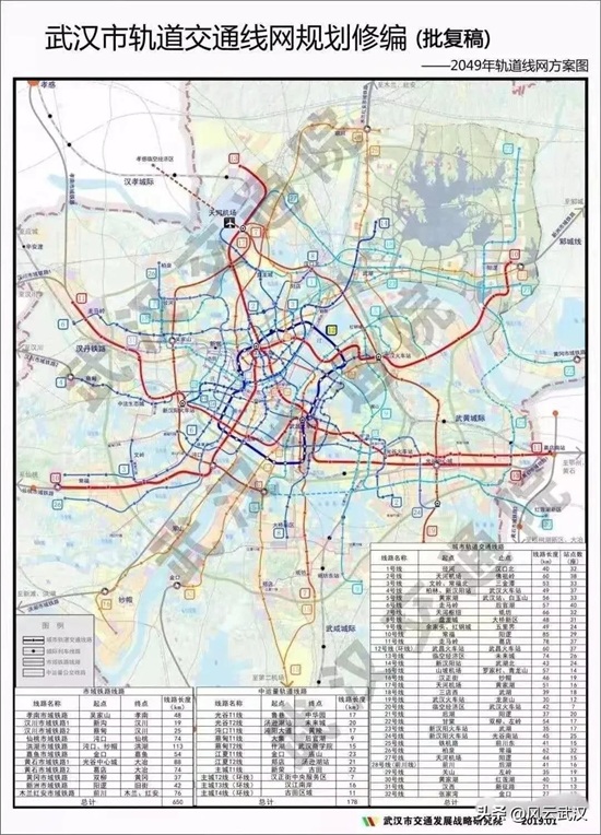 根据2019年已批复的“武汉市轨道交通线网规划修编”:至2049年,武汉市规划有32条地铁。去掉前四轮已经批复的线路,目前在规划内但尚未批复的线网有近20条。