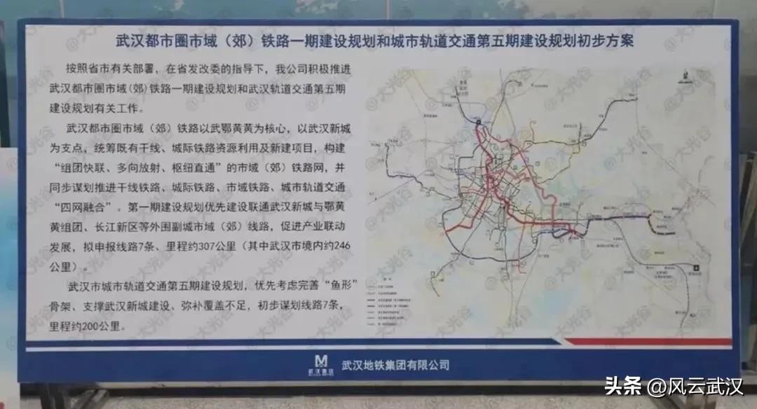 武汉市城市轨道交通第五期建设规划,优先考虑完善“鱼形骨架、支撑武汉新城建设、弥补覆盖不足,初步谋划线路7条,里程约200公里。