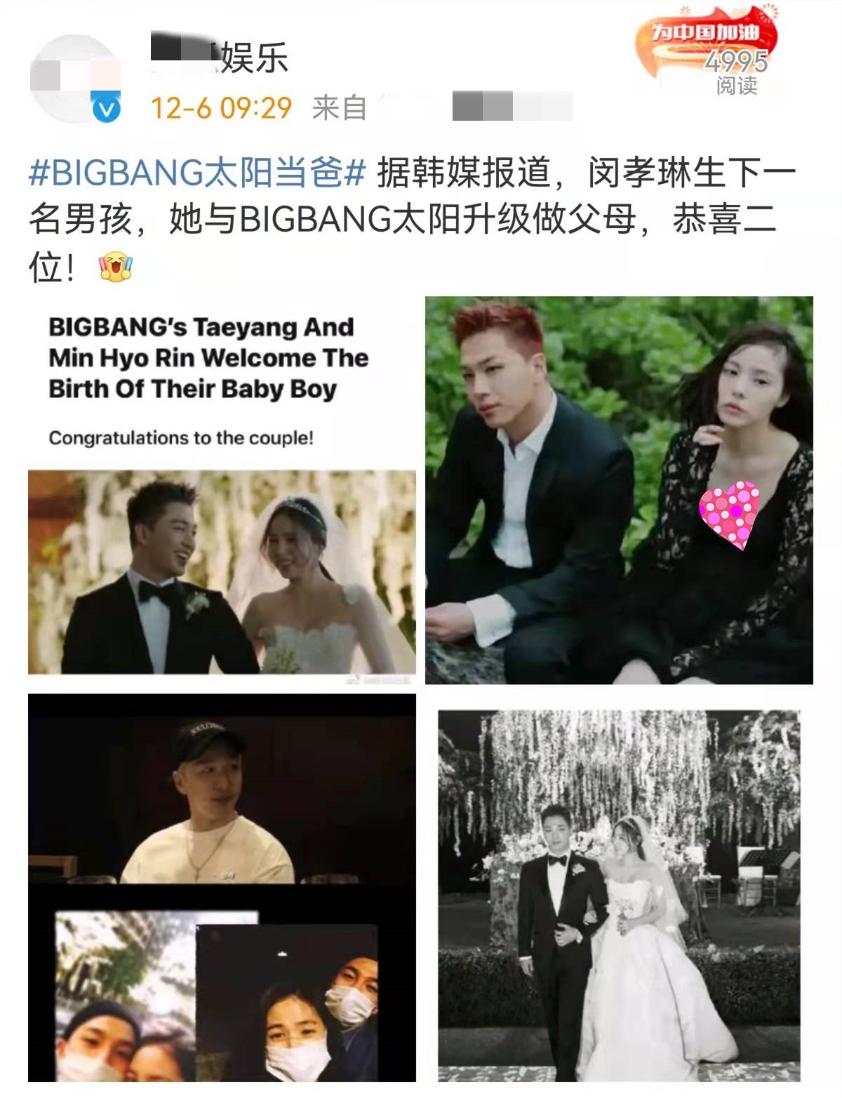 #bigbang 太阳#、#BIGBANG太阳当爸#、#Bigbang太阳妻子闵孝琳怀孕#