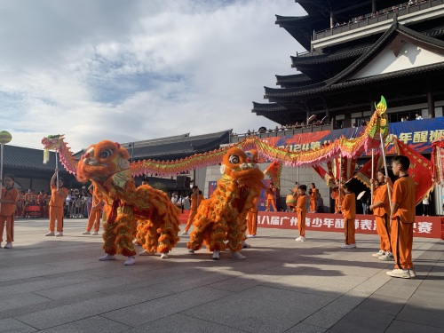 10月26日至27日,第八届广州青少年醒狮表演赛决赛在广州市文化馆中心阁广场隆重举行。来自全市11个区的25支优秀狮队、300多名青少年参赛者齐聚决赛现场,以精湛的狮技一较高下,角逐“狮王”桂冠,展广府醒狮之威。