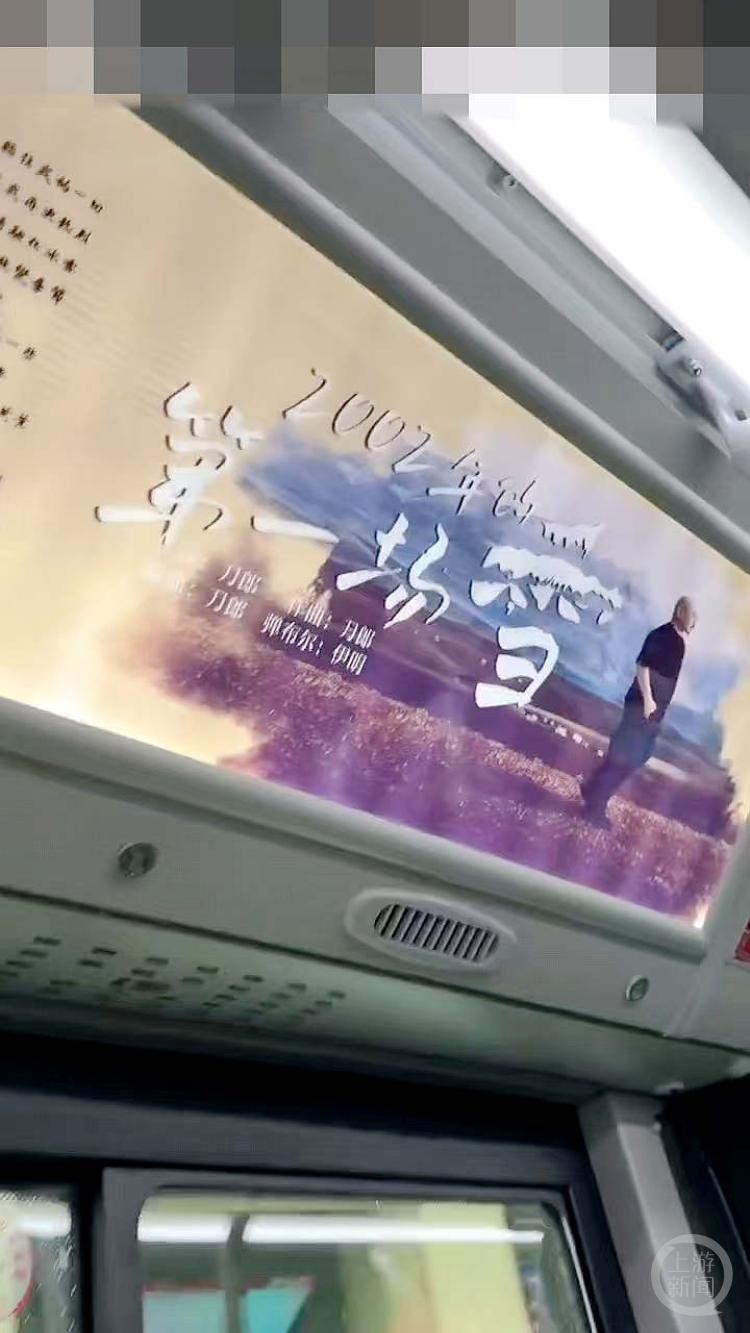 车上张贴有《2002年的第一场雪》的歌词。网络图