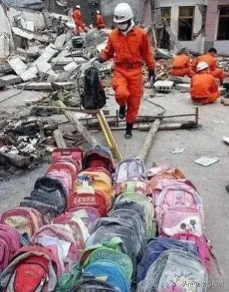 搜救人员将找到的孩子们的书包整齐摆放,等待家长前来认领,用以告慰生者。五颜六色的小书包好似一个个鲜活的幼小生命,这一刻让人泪崩!
