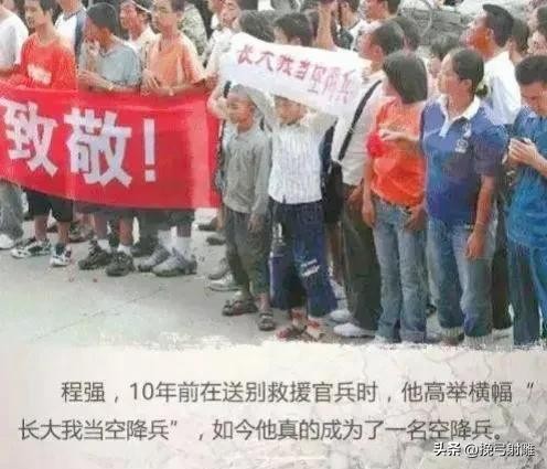 这名手举长大要当空降兵横幅的孩子,后来如愿以偿成了一名真正的空降兵战士。