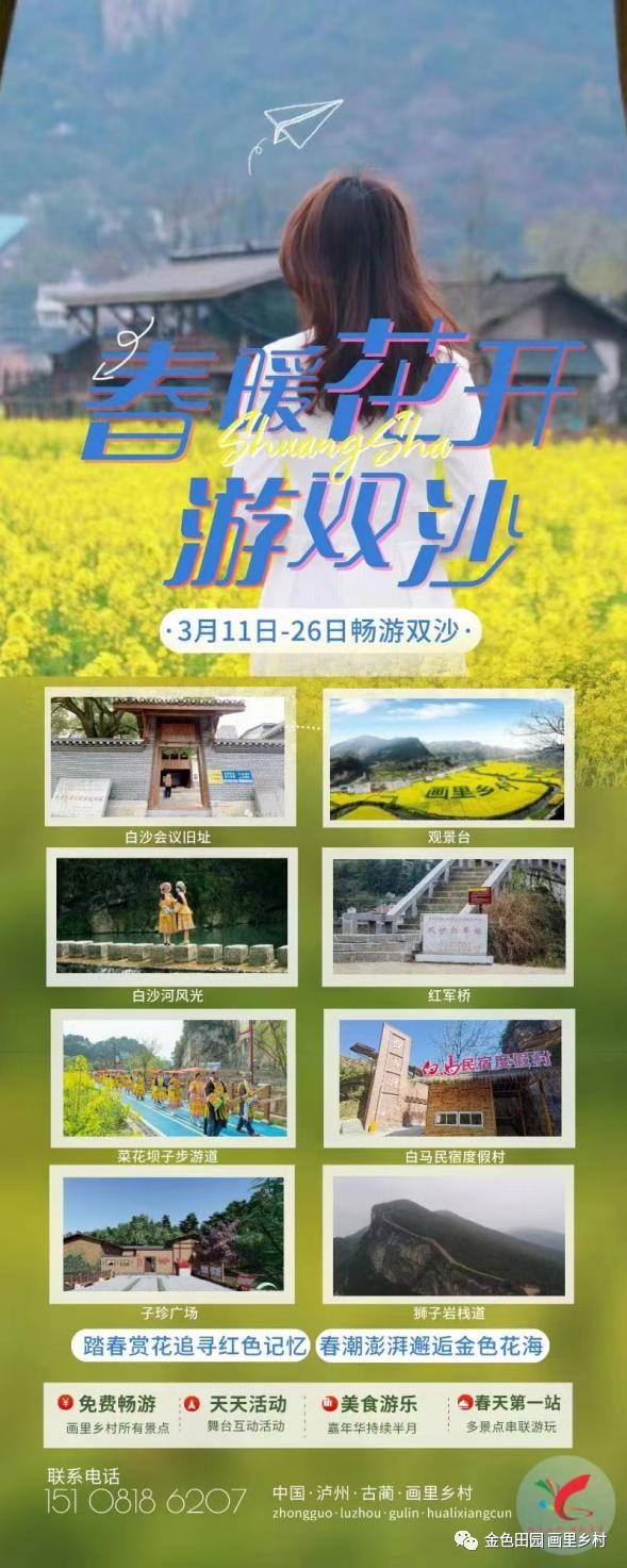 古蔺县被认定为四川第四批省级全域旅 游示范区,为助力全县创建天府旅游名 县添砖加瓦。提升红色白沙金色田园知名度,美誉度,为双沙乡村振兴助力。