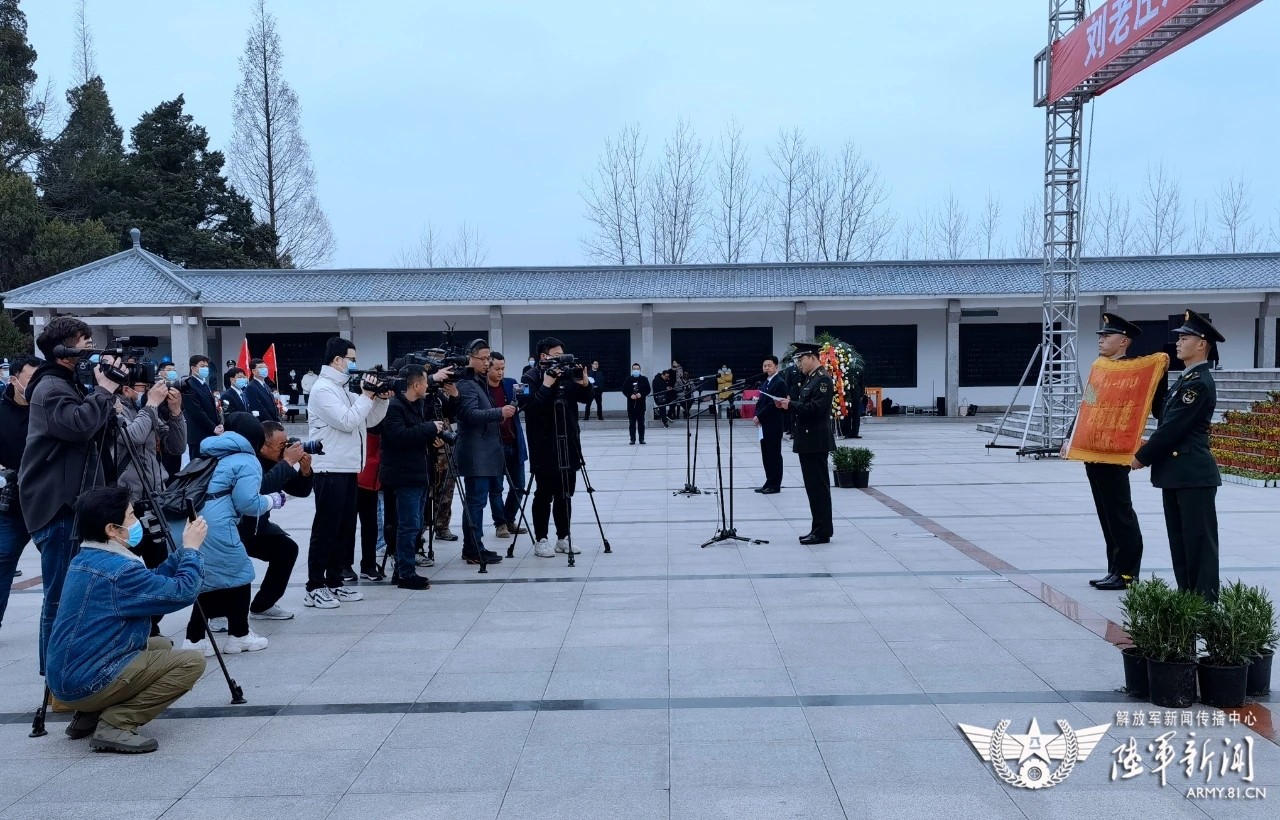 纪念仪式上,地方领导和原刘老庄村长分别作了讲话。“刘老庄连”政治指导员杨晋向刘老庄当地政府和群众代表汇报了连队发展近况。