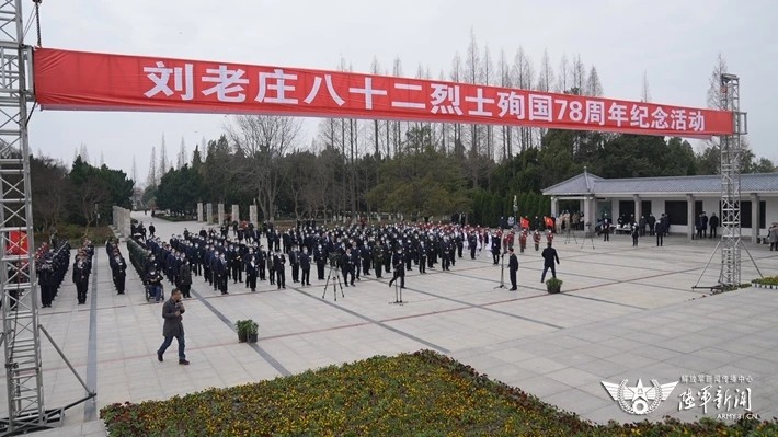 碑亭耸立,松柏苍翠。3月18日,第82集团军某旅“刘老庄连”官兵远赴千里之外的江苏省淮安市淮阴区,参加刘老庄八十二烈士殉国78周年纪念活动。