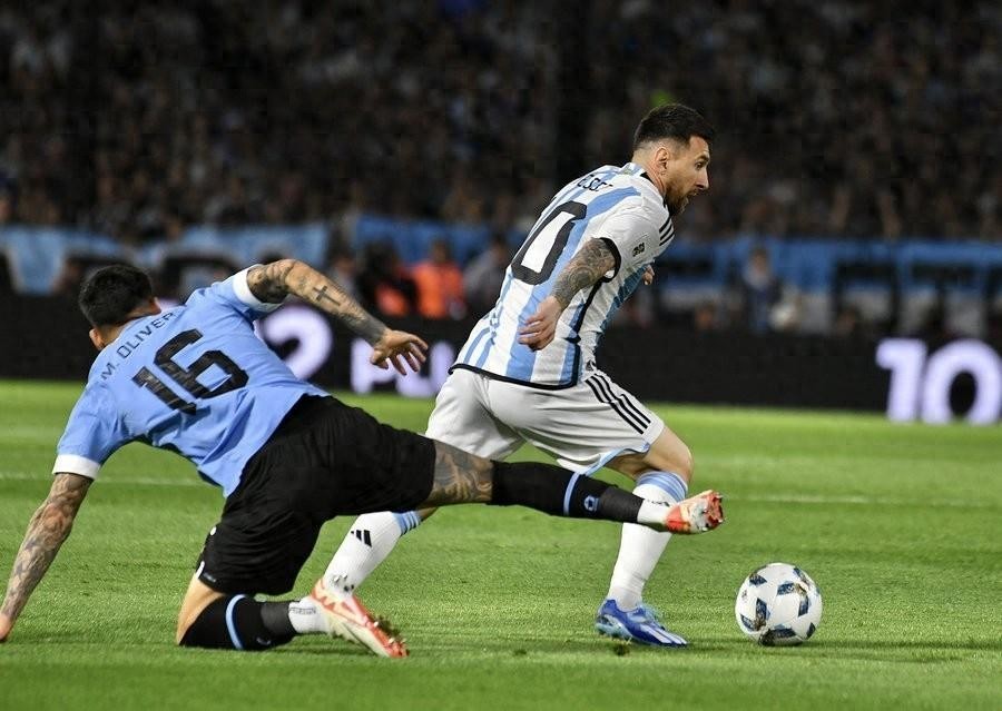 北京时间2023年11月17日,2026年世界杯南美洲赛区预选赛小组赛第5轮展开了一场焦点对决,世界排名第1的阿根廷队在主场迎战世界排名第15的乌拉圭队。这场比赛以阿根廷队的意外失利而告终,最终以0-2不敌乌拉圭队,这也是他们本届世预赛的首场失利。比赛中,双方球员展现了激烈的对抗和火药味十足的冲突,其中包括梅西的愤怒表现和锁喉动作。乌拉圭队的胜利被视为一大