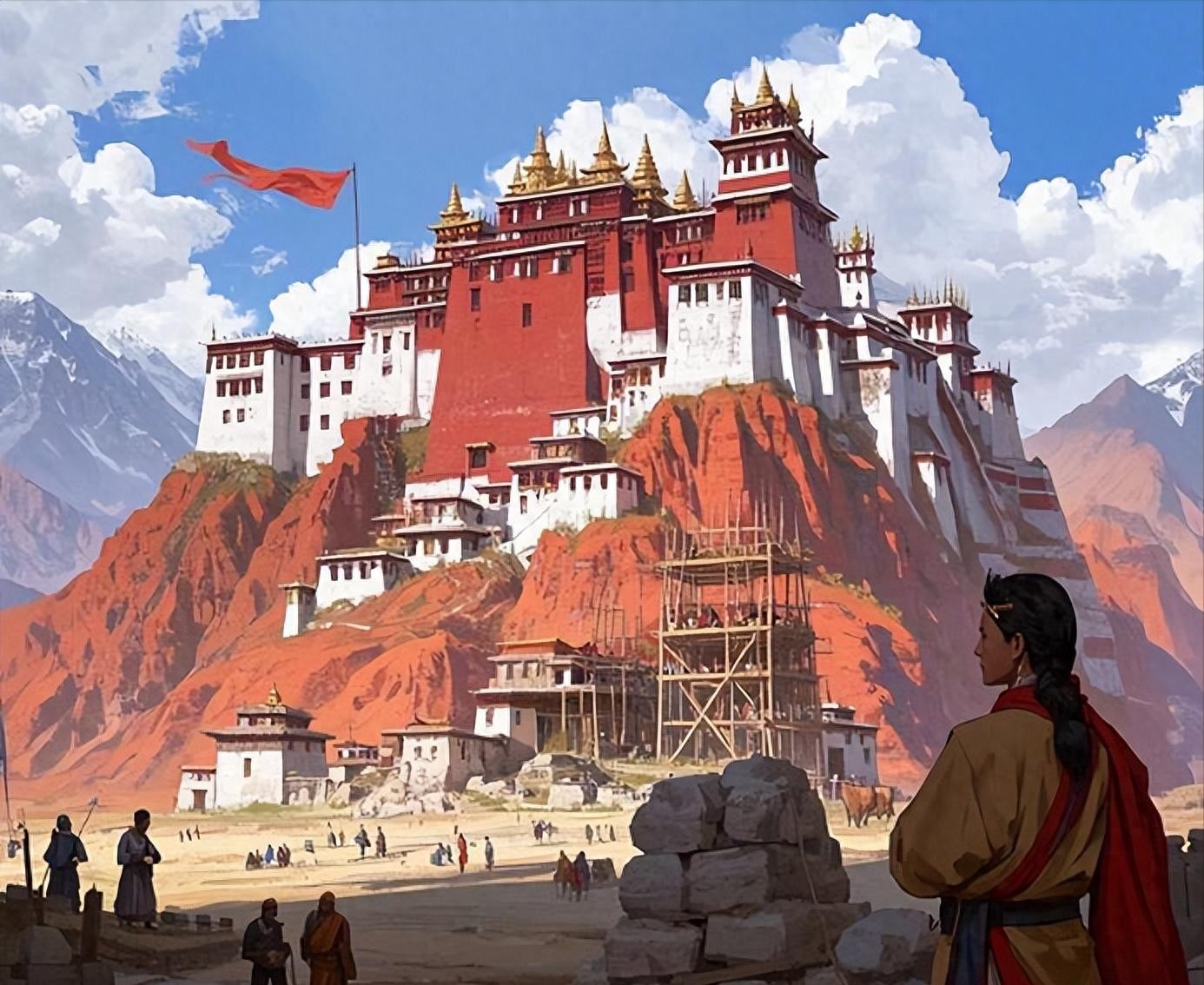 为了迎接文成公主,松赞干布费了好大劲儿,在红山山顶上精心修了布达拉宫。