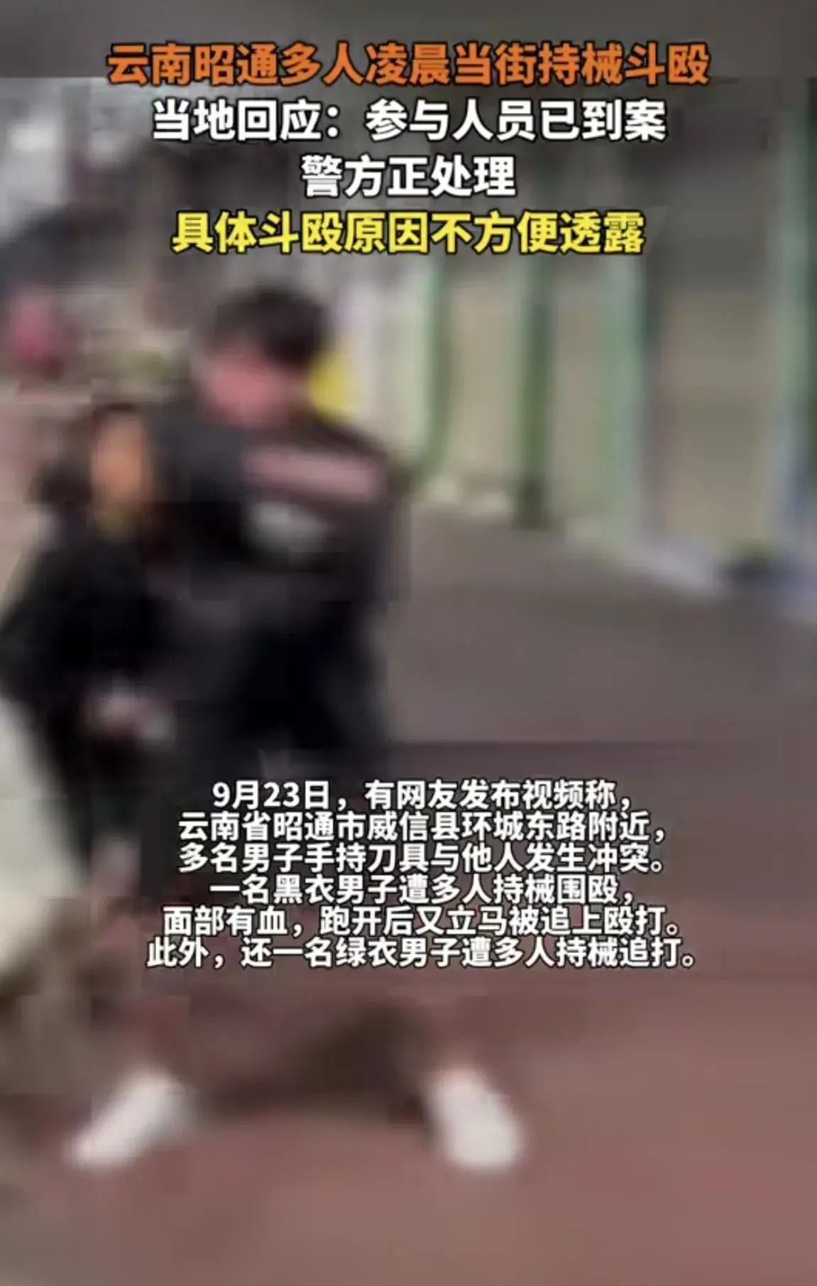 9月23日,云南省昭通市威信县,网传一段多人持械当街斗殴的视频,引发网友热议。